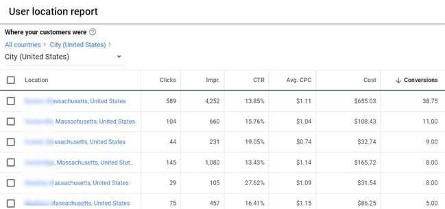 The User Location Report is a list of the best-performing geographic areas you are targeting with Google Ads. The report can show places where your potential customers are likely to be located, or are regularly located. We often use the user location report in combination with sales data from a business’s CRM. The way we analyze the user location report is dependent on the type of business running Google Ads.